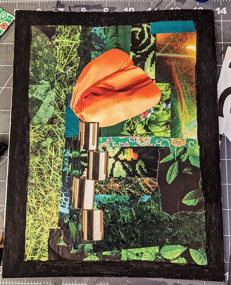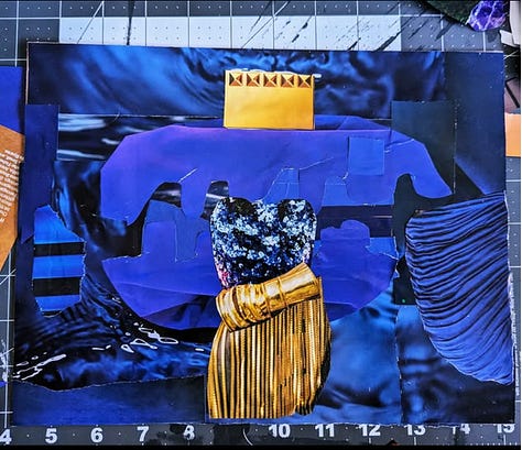 !) during all that is going in journalism, in America, to my rights over my own body. The idea is to commit to some sort of artistic practice every day for those 100 days and I’m looking forward to having a spot in my day for something that is not writing, job searching, cleaning, and stressing over bills/being single/taking care of my health/etc/etc/etc; something that creates as a balm to all the destruction we are seeing on a daily basis. I’ve shared some of my collages before and you’ll be subjected to more of them. In case you didn’t know, two of my designs have been sold by Target dot com the last few years as part of their AAPI Heritage Month push. I will resume flogging my wares to you once they bring back their DEI efforts.In the meantime here are a few pieces that are not for sale because I don’t want to be sued by D*sney or Bollywood: